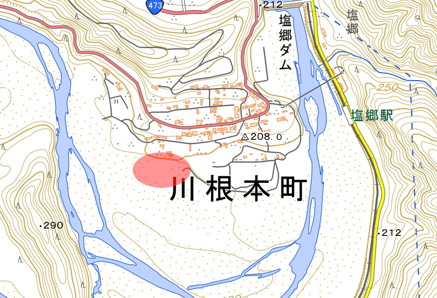 今回の調査で 近辺を歩き回ったところ、川岸で竹藪があるのはこのあたりだけ。