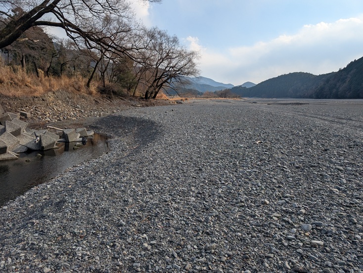 「くのわき親水公園キャンプ場」から出て河原に降り立ったあたりです。