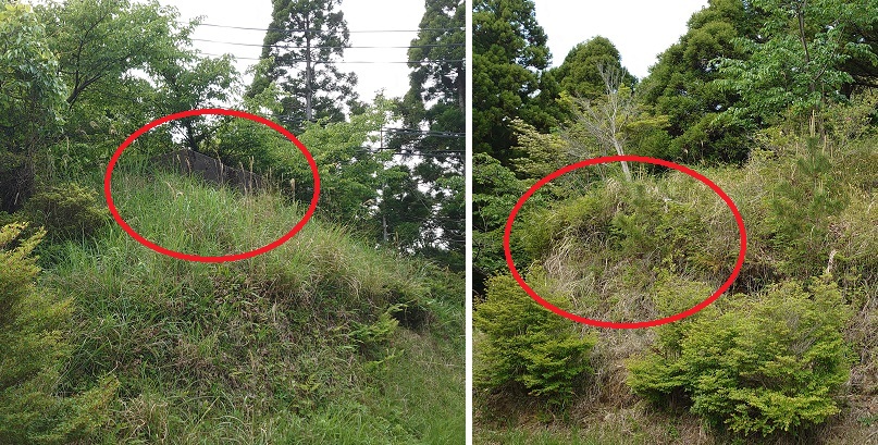 そこから右を向くと簡易なバリケードがあり、ここから先が廃棄されたエリアとなります。