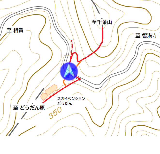 公衆トイレ横をどうだん原方面へ入ると、まずは周辺のハイキングコースの案内板が目に入ります。