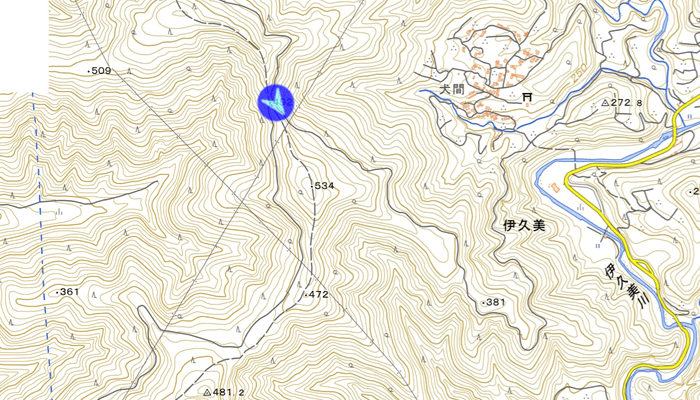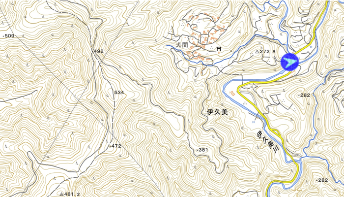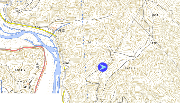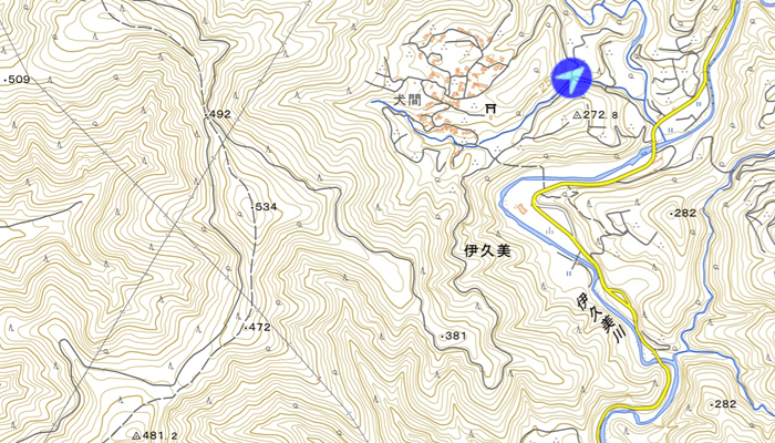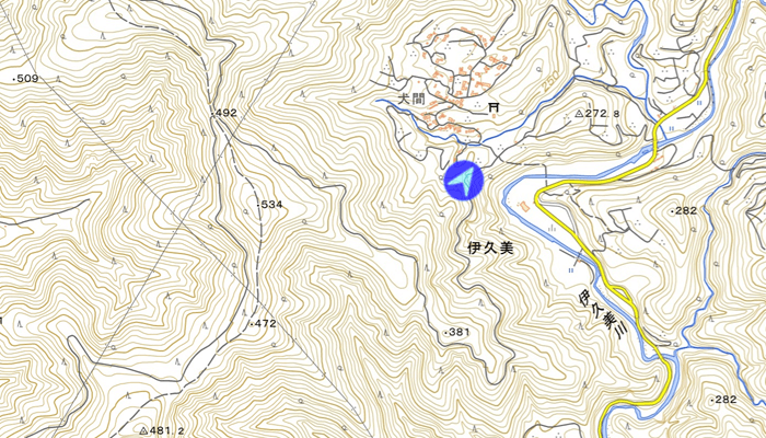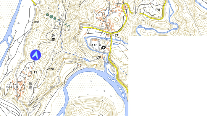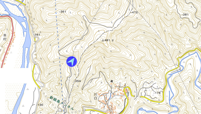 国土地理院の地図を確認すると、ここから2kmほど先で道は途切れています。